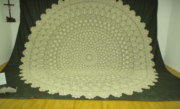 Originalna čipka izrađena je poslije Drugoga svjetskog rata, a služila je kao ukras interijera. Čipka je tzv. baroknih motiva, promjera …