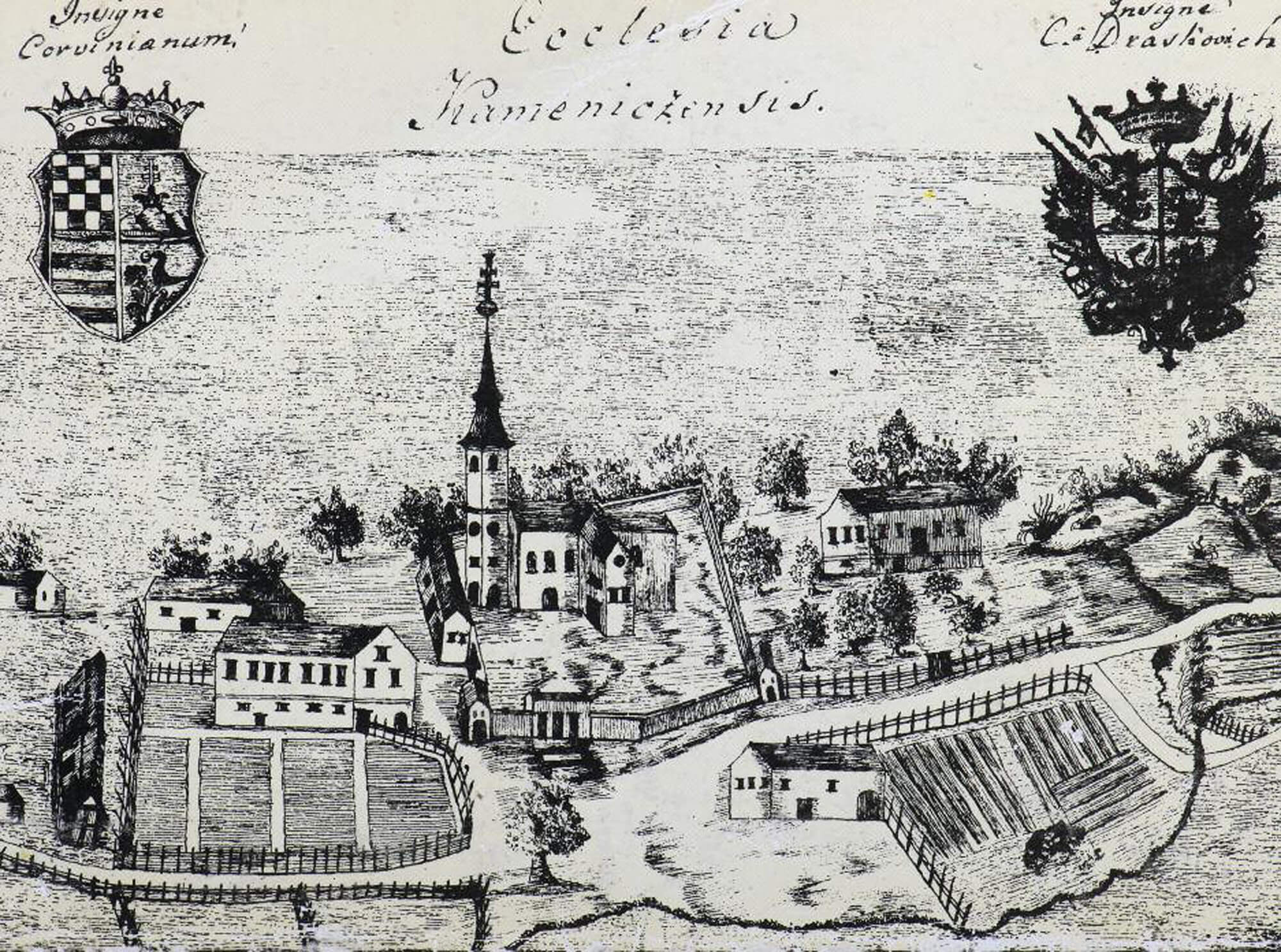 Nakon izumiranja loze Celjskih, kada je u Beogradu Ladislav Hunjadi ubio Urlika Celjskog, Kamenica dolazi u posjed Jana Vitovca. Kako su se Vitovci u ratu između Matijaša Korvina i njemačkog cara Friedricha prešli na Fredrichovu stranu, posjed im je oduzet. Matijaš Korvin daruje zagorsku grofoviju u sklopu koje se nalazila i Kamenica svojem nezakonitom sinu Ivanošu Korvinu koji Kamenicu daruje Ivanu Gyulayu pa Kamenica pripada ovaj obitelji sve do 1568. godine kada obitelj izumire. Nakon smrti Ivaniša Korvina njegova udovica Beatrica Frankopan darovala je Kamenicu lepoglavskim pavlinima. Pavlini nisu mogli preuzeti Kamenicu jer darovnicu nije potpisao kralj. Po dodjeljivanju Trakošćana i Kamenice Juraju II Draškoviću, pavlini su pokrenuli sudski spor koji je trajao oko 130 godina, a 1730. godine Banski stol dosudio je Kamenicu Draškovićima kao nedjeljivi dio vlastelinstva Trakošćan.