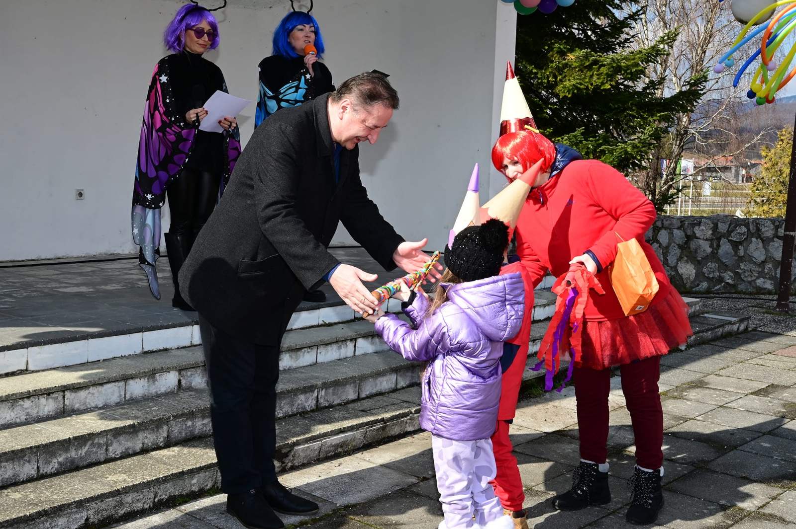 Dobroj atmosferi na terasi u ovu sunčanu nedjelju pridonijeli su i članovi Odreda izviđača Lepoglava, a sve su ugodno iznenadile i maskote Mickey i Minnie Mouse. Maskote su i ove godine pomogle malim maškarama da otjeraju zimu probušivši balone od kojih je bio napravljen Fašnik.